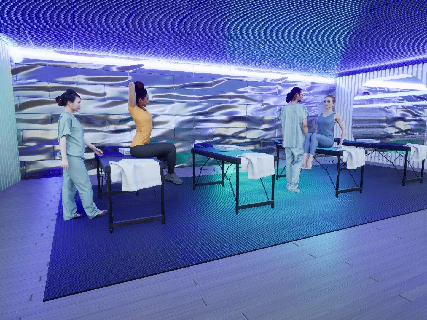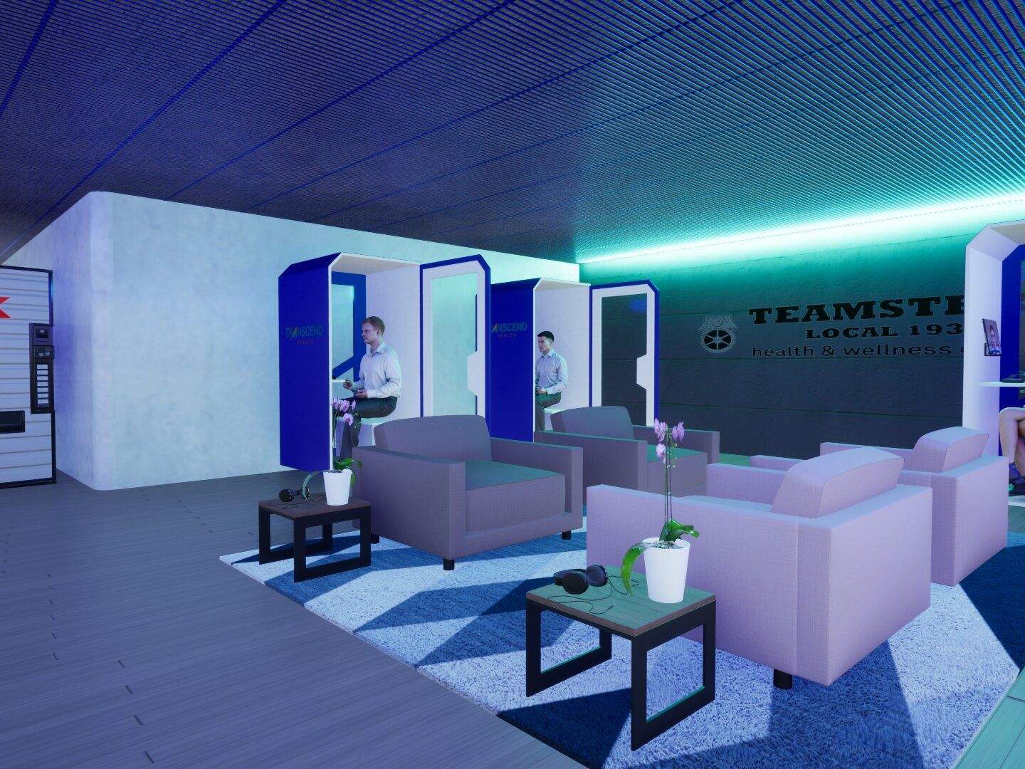 This project involved designing and visualizing a dedicated health and wellness building for the union workers of Teamsters Local 1932 in California. The scope required comprehensive interior renderings, spatial planning, and a full video walkthrough to communicate both functionality and atmosphere. The design focused on creating a supportive, restorative environment tailored to the needs of the workforce—incorporating areas for fitness, recovery, mental wellness, and community engagement.