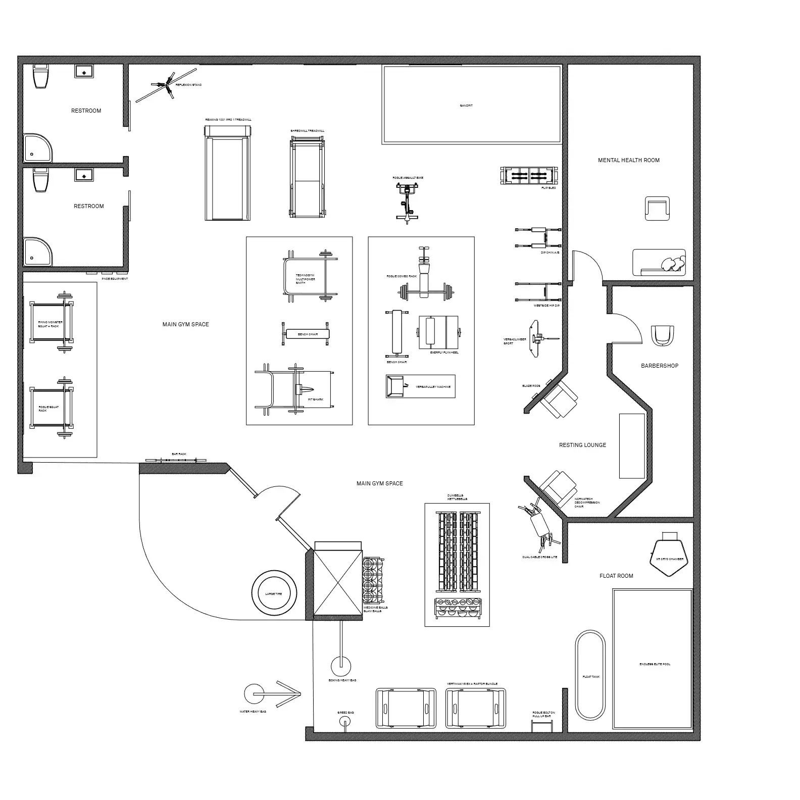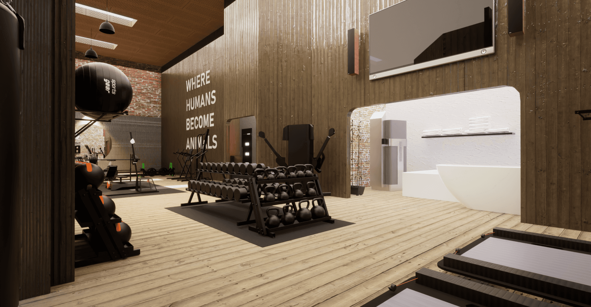 Commissioned by a personal trainer launching his own fitness business, the project required translating his vision of a warm, welcoming, and high-performance training space into a fully realized environment.