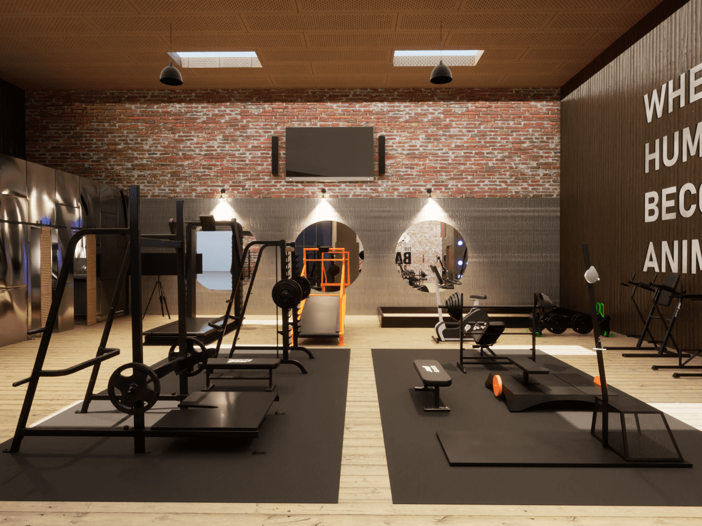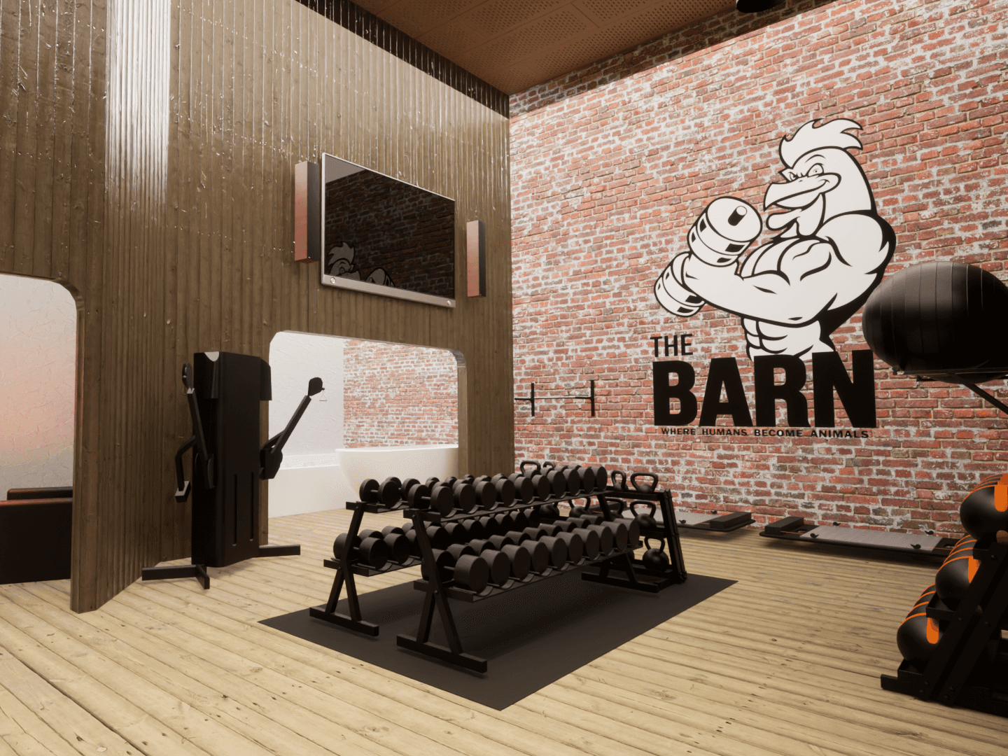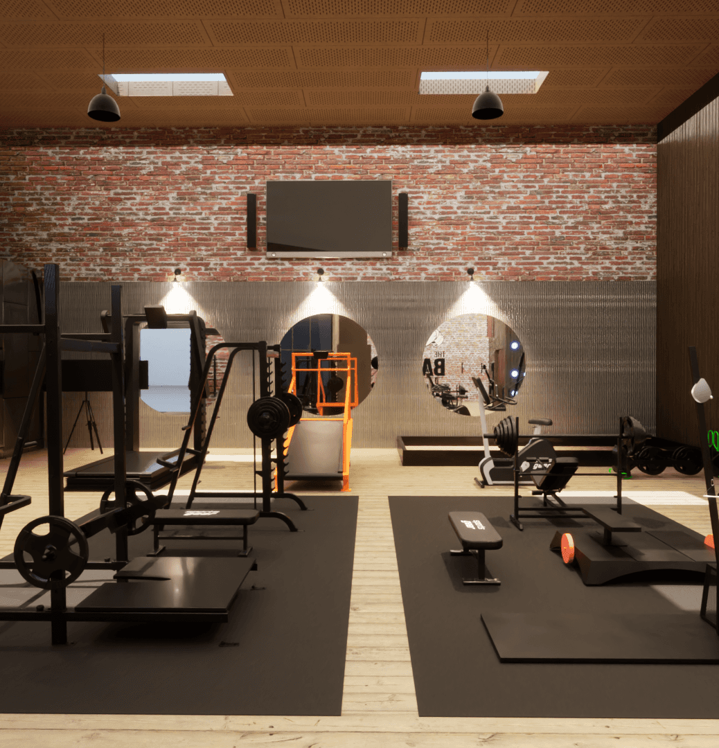 This project showcases a rendered interior design visualization of The Barn LA, a rustic gym concept located in Pasadena, California. The work includes custom-modeled equipment, handcrafted material sets, and bespoke architectural assets developed specifically for the project. Every detail; from layout planning to lighting, was handled by Olivia to ensure a cohesive and realistic final presentation.